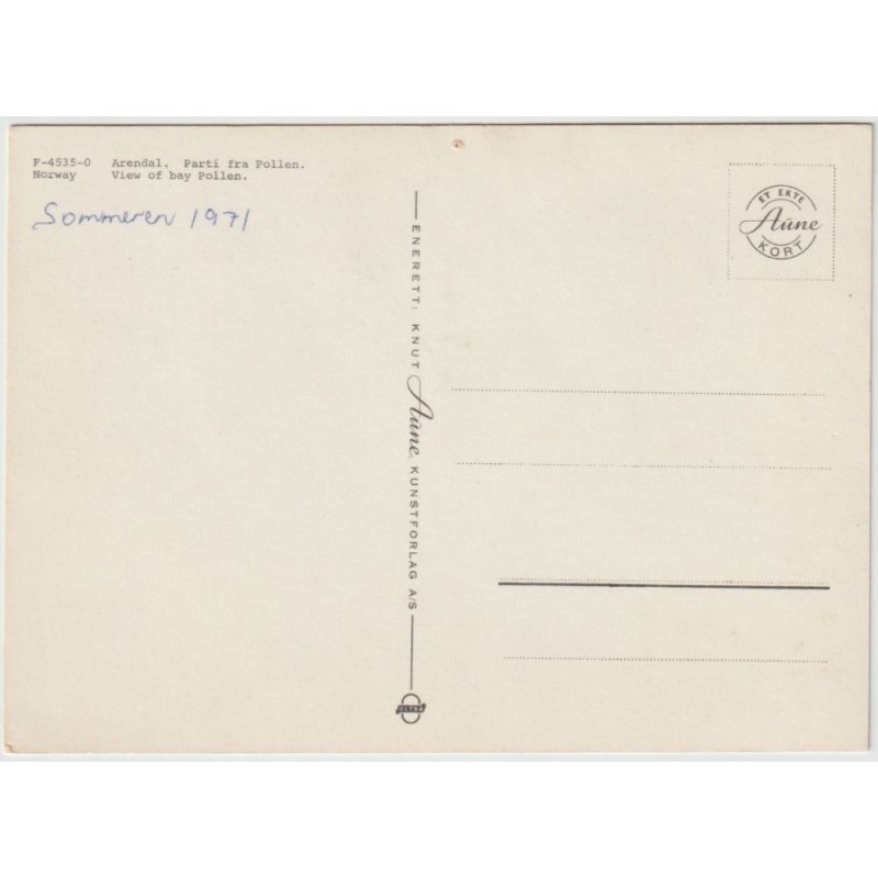 F-4535-0. Arendal. Parti fra pollen. Knut Aune Kunstforlag AS. Ikke postgått, god stand, hull etter nål, se scans for kvalitet.