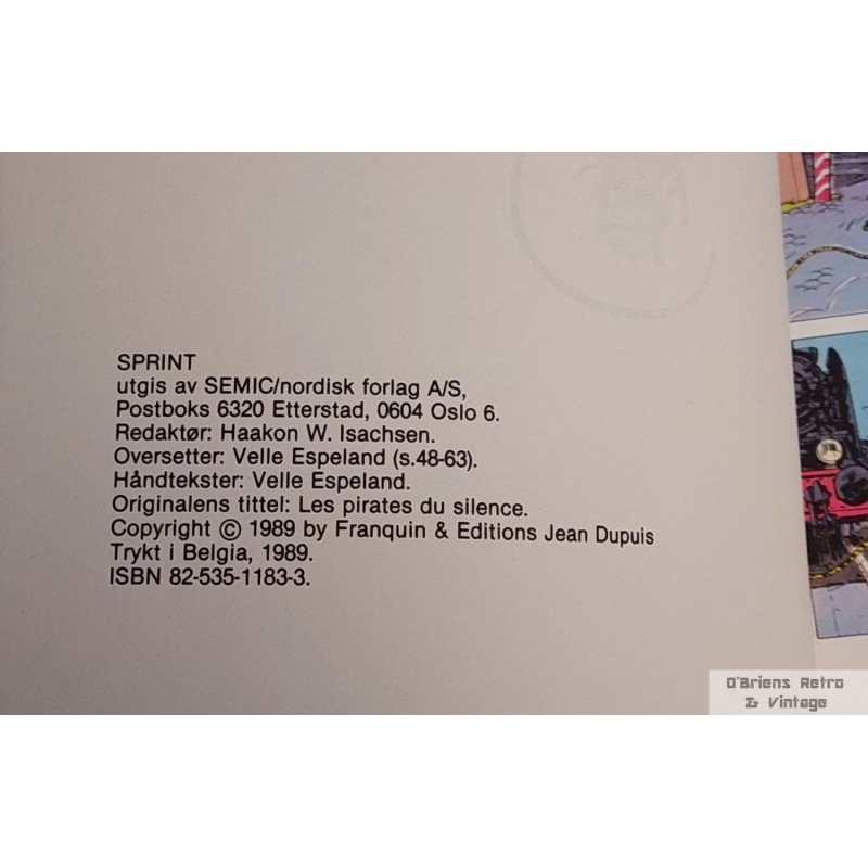 Tegneseriealbum med Sprint fra 1989 i veldig god stand. ISBN 82-535-1183-3. Se bilder for mer informasjon.