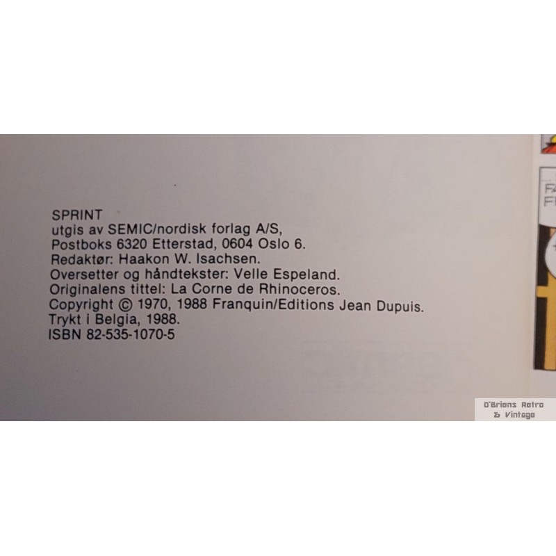 Tegneseriealbum med Sprint fra 1987 i veldig god stand. ISBN 82-535-1070-5. Se bilder for mer informasjon.