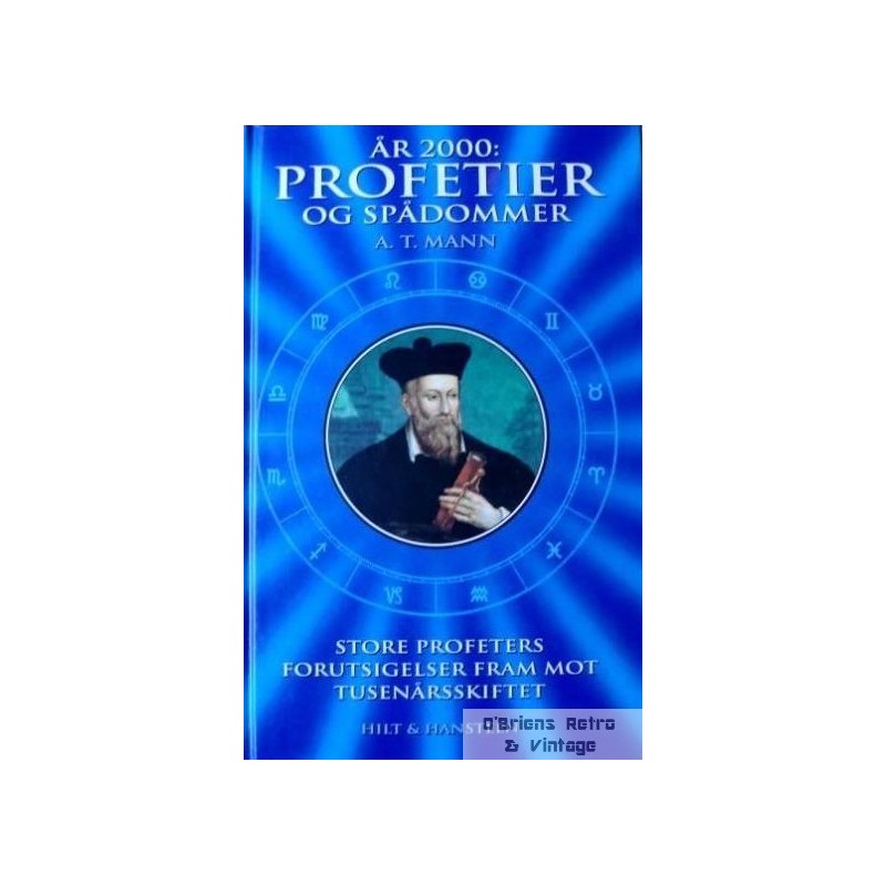 A. T. Mann: År 2000: Profetier og spådommer - Store profeters forutsigelser fra mot tusenårsskiftet, Oslo 1994, innbundet bok i flott stand, 215 sider.