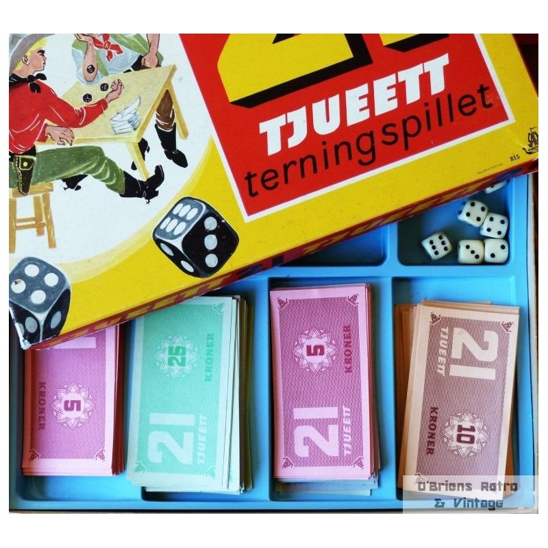 Eldre brettspill fra Saga Kunstforlag. I bra komplett stand. Esken i fin stand, med spilleregler. 21 - Tjueett terningspillet.