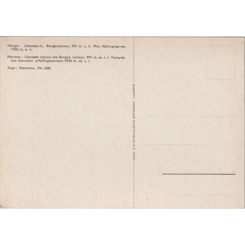 Norge: Ustaoset stasjon. Bergensbanen. Mot Hallingskarvet. Foto: Normann. Nr. 628. Ikke postgått, god stand, se scans for kvalitet.