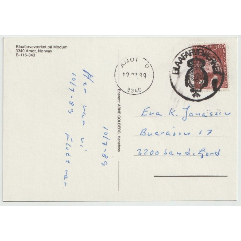 B-116-343. Arne Golberg, Hønefoss. Postgått, fin stand, se scans for kvalitet.