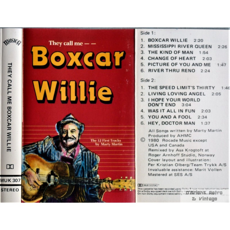 Kassett. They Call Me Boxcar Willie. Musica MUK 307. 1980. I bra komplett stand. Testet og virker som den skal.