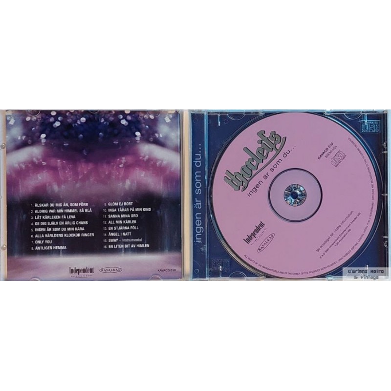 Thorleifs - Ingen är som du... 2000. Independent Entertainment Sweden. KAVACD 010. Brukt CD i god stand, men bruksspor på selve CD-platen. 7391970610003. Se bilder for mer informasjon om albumet.