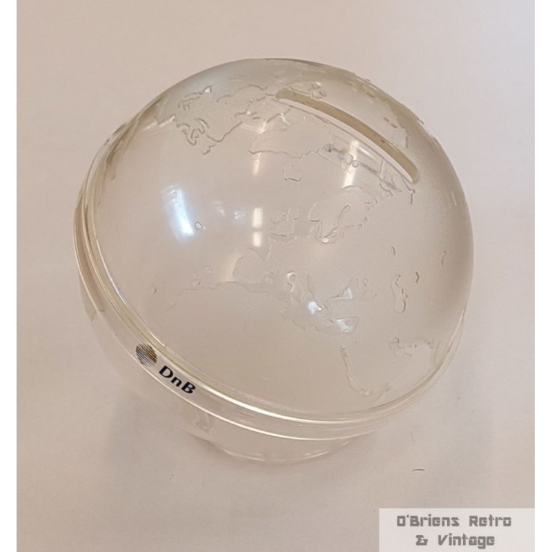 Sparebøsse. Fra DnB. I plast. I veldig bra stand. Uten nøkkel. H=10 CM.