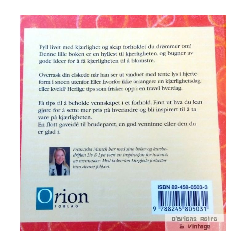 Franciska Munck: Kjærlighet - Gode tips for å få kjærligheten til å blomstre, Oslo 2001, innbundet bok i veldig god stand, 64 sider. ISBN 82-458-0503-3.