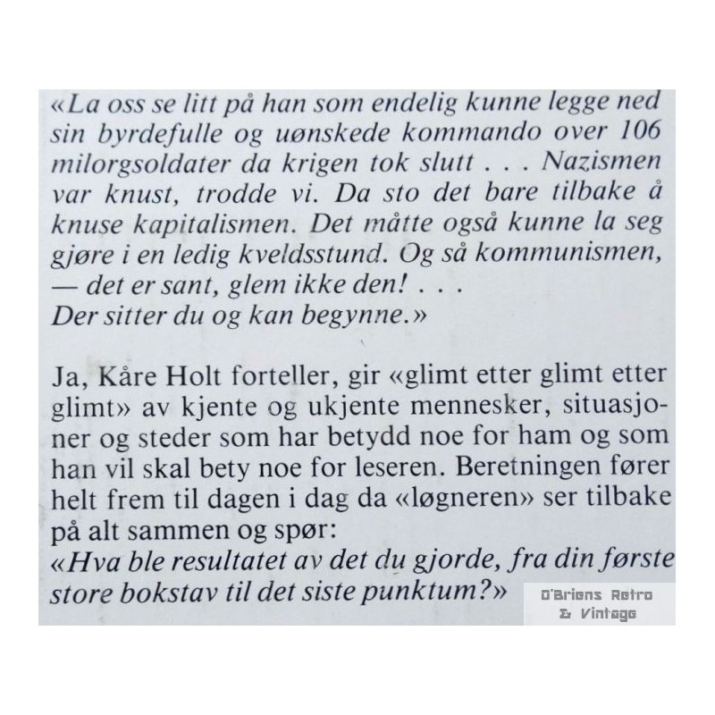 Kåre Holt: Veien videre - Ny sannferdig beretning om mitt liv som løgner, Oslo 1983, innbundet bok med omslag i veldig god stand, 277 sider. Se bilder for mer informasjon om boken.