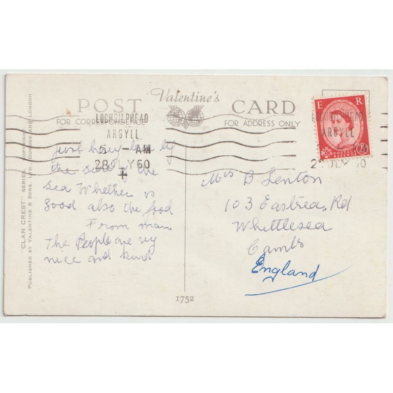 Clan Crest Series. Valentine & Sons, Ltd. 1752. Postgått, fin stand, se scans for kvalitet.