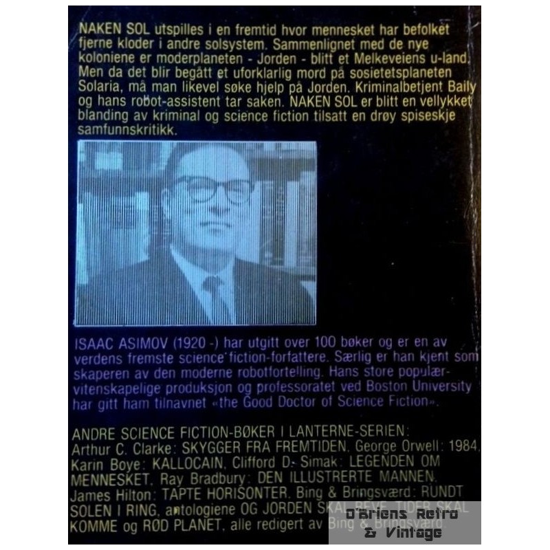 Isaac Asimov: Naken sol, Oslo 1971, heftet bok i pen stand, 190 sider. Gyldendals Lanterne-bøker. Se bilder for mer informasjon om boken.