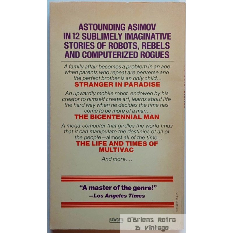 Isaac Asimov: The Bicentennial Man and Other Stories, 1976, pocketbok i veldig god stand, engelsk språk, 222 sider. ISBN: 0-449-23573-4. Se bilder for mer informasjon om boken.