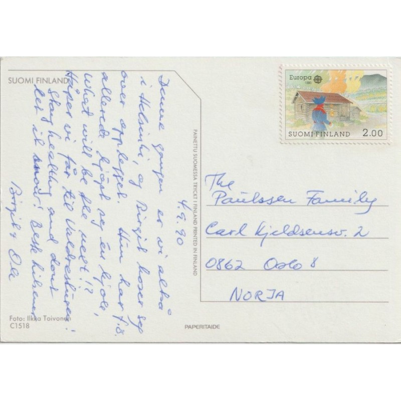 Koselig kort fra Finland. Painettu Suomessa. C1518. Postgått, fin stand, se scans for kvalitet.