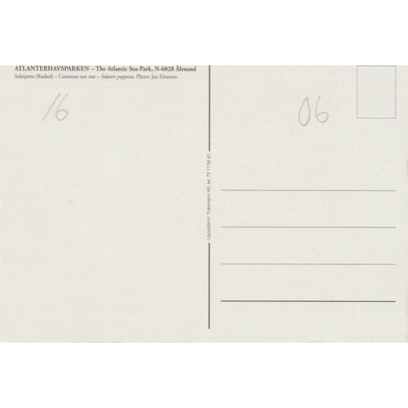 Atlanterhavsparken, The Atlantic Sea Park, Ålesund. Solstjerne (Rødsol), Common Sun Star. Photo Jan Einarsen. Ikke postgått, veldig god stand.