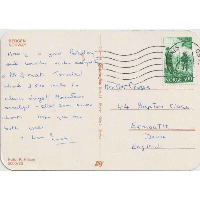Bergen, Norway. Foto: K. Hilsen. 5000/80. Husmo-foto. Postgått, fin stand, se scans for kvalitet.