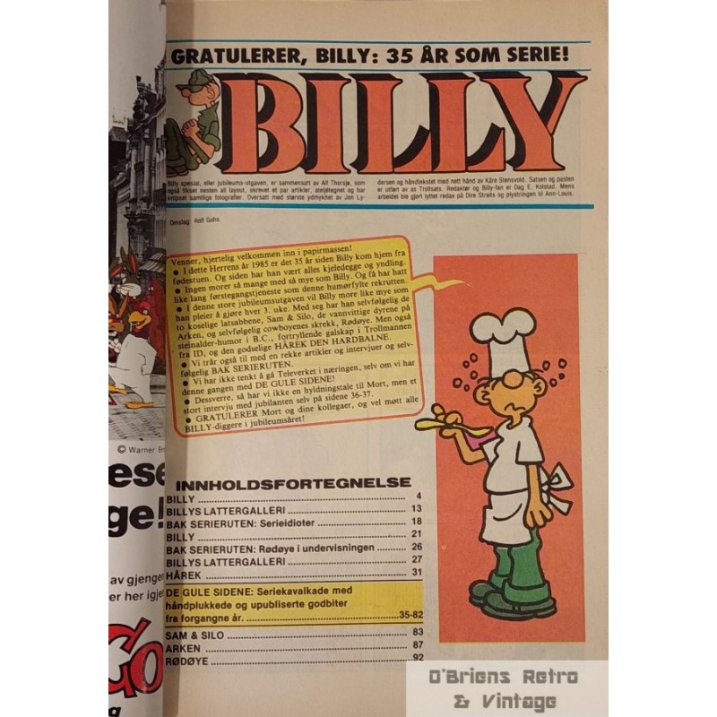Tegneseriehefte med Billy i pen stand. 100 siders jubileumsnummer. Billy 35 år.