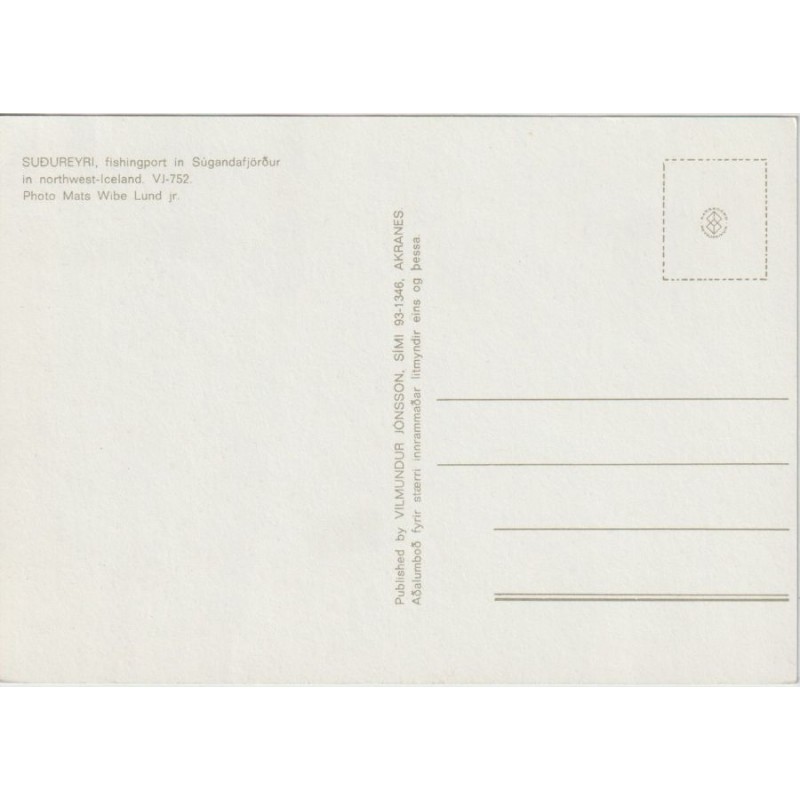 Sudureyri. Fishingport in Súgandafjörður. VJ-751. Photo Mats Wibe Lund jr. Published by Vilmundur Jonsson. Ikke postgått, god stand, hjørnebrett, se scans for kvalitet.