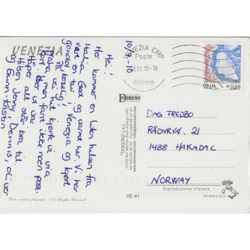 Dimeno S. R. L. VE 41. Postgått, god stand, se scans for kvalitet.