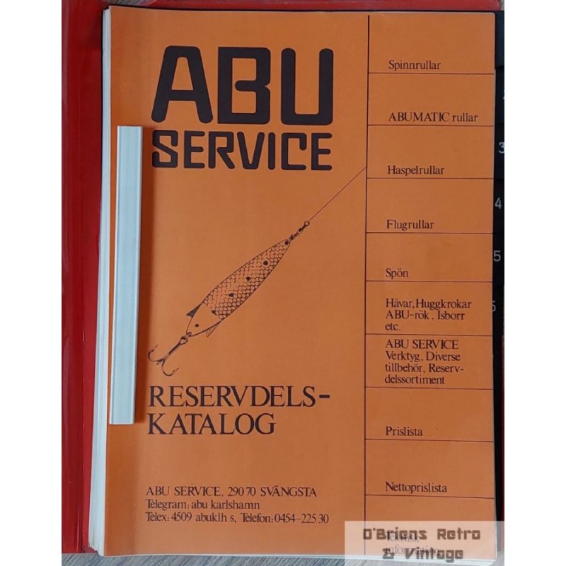 Omfattende ABU katalog over reservedeler og service fra 1981. Generelt i god, brukt stand. Svensk tekst. Se bilder for mer informasjon.