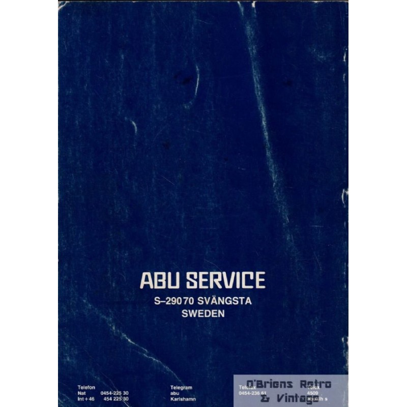 Inneholder informasjon om: Baitcasting-sneller, ABUMATIC-sneller, spinnsneller, fluesneller, stenger, håver, klepp, ABU-røykovn, ABU SERVICE, verktøy. Ambassadeur, Abumatics, Cardinals og mer. Omslaget er i akseptabel stand, sidene i veldig god stand.