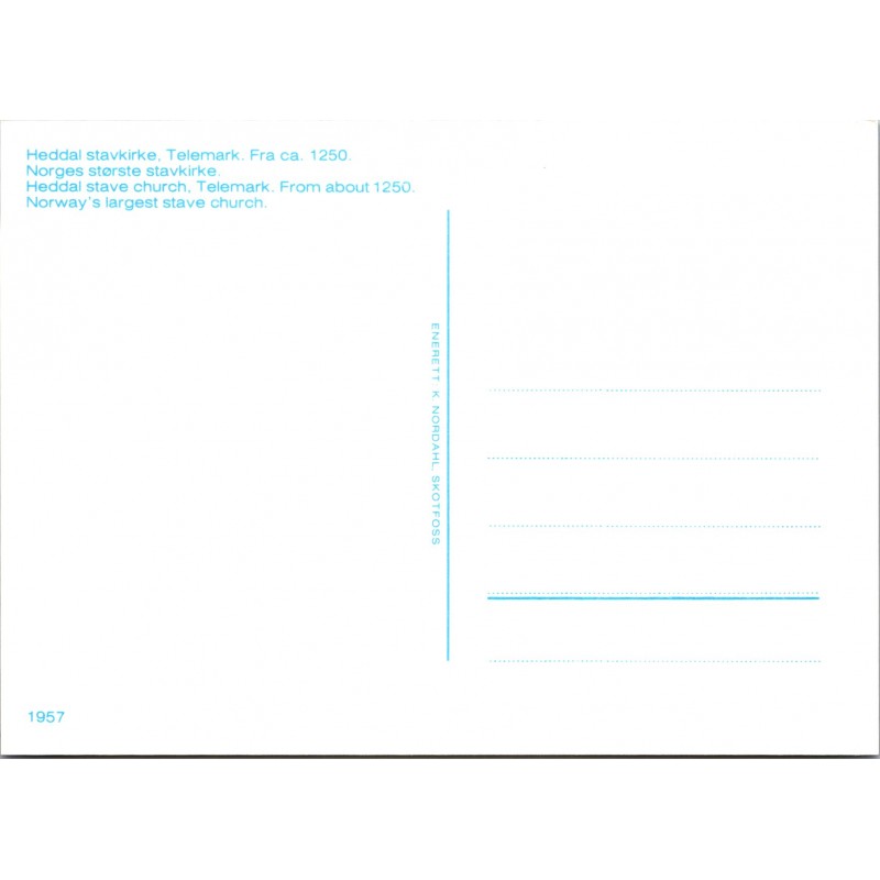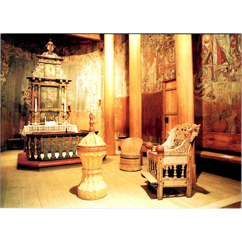 Heddal Stave Church, Telemark. Norway’s largest stave church. Interior. 1957. K. Nordahl, Skotfoss. Not postmarked, very good condition, see scans for quality.