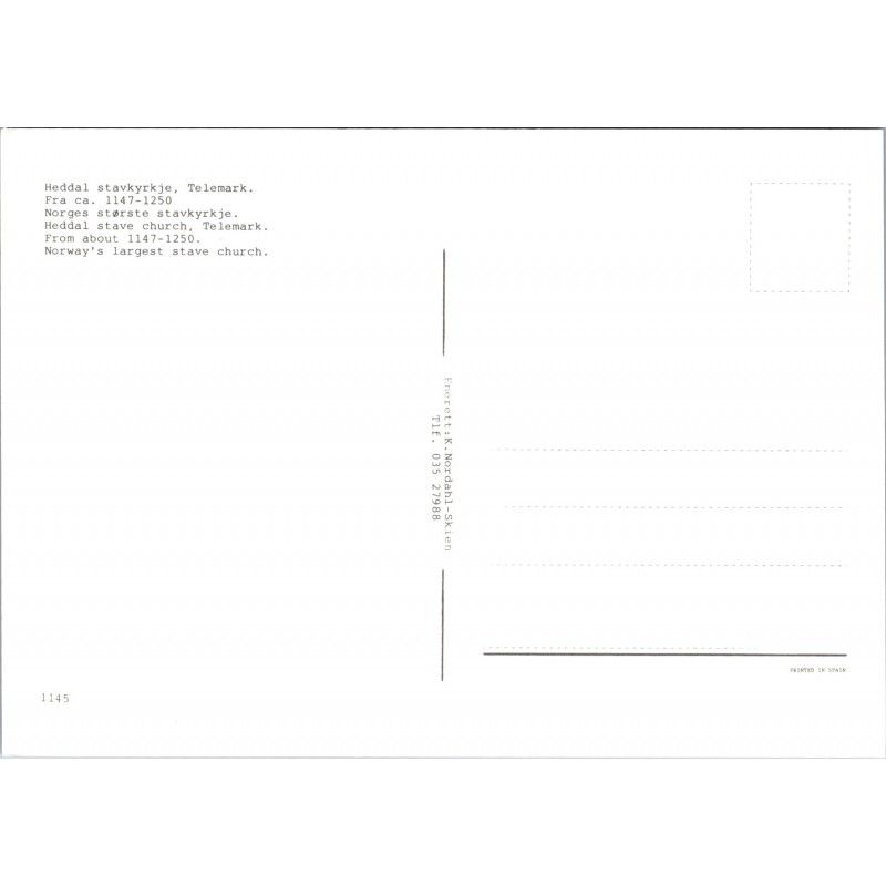 Heddal stavkyrkje, Telemark. Norges største stavkyrkje. 1145. K. Nordahl - Skien. Ikke postgått, veldig god stand, se scans for kvalitet.