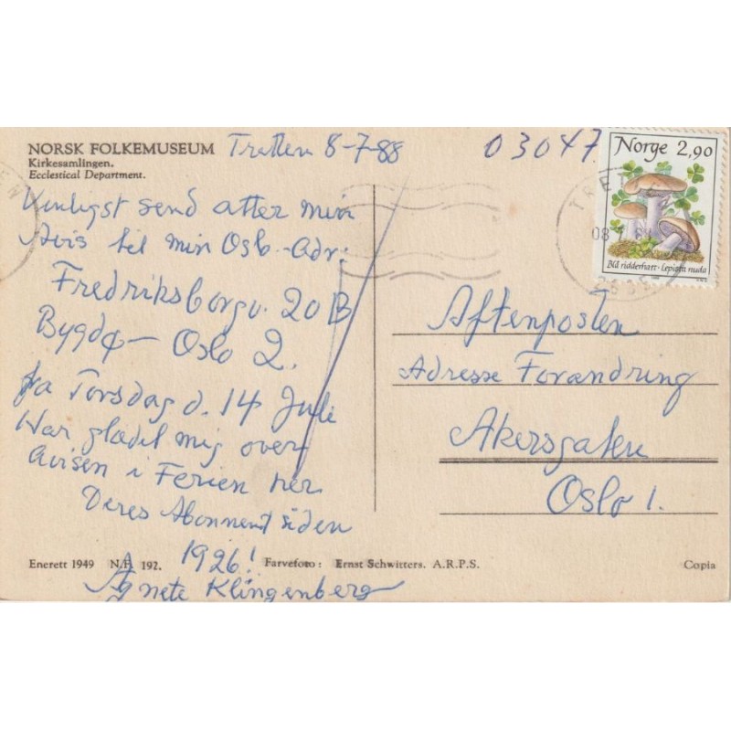Norsk Folkemuseum. Kirkesamlingen. N. F. 192. Farvefoto: Ernst Schwitters. Postgått, god stand, se scans for kvalitet.
