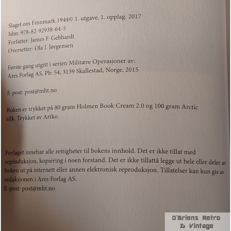 James F. Gebhardt: Slaget om Finnmark 1944 - Stalins befrielse av Kirkenes. Skallestad 2017. Heftet (pocket) i pen stand, illustrert, 179 sider. Norge, 2. verdenskrig.