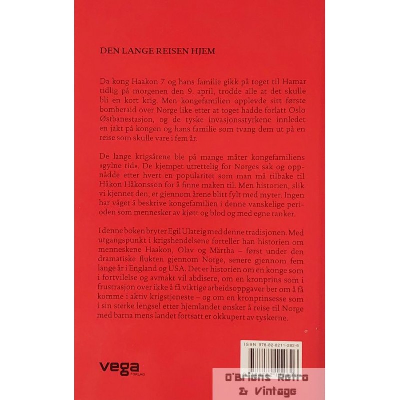 Egil Ulateig - Den lange reisen hjem - Kongefamilien i eksil 1940-1945, Oslo 2012, pocket i bra stand, eiernavn, illustrert, 174 sider. Se bilder for mer informasjon om boken.