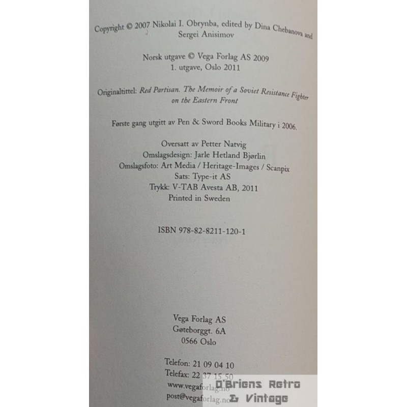 Nikolaj I. Obrynba: Rød partisan - Bak nazistenes linjer, Oslo 2011, pocketbok i pen stand. ISBN 978-82-8211-120-1. Se bilder for mer informasjon om boken.