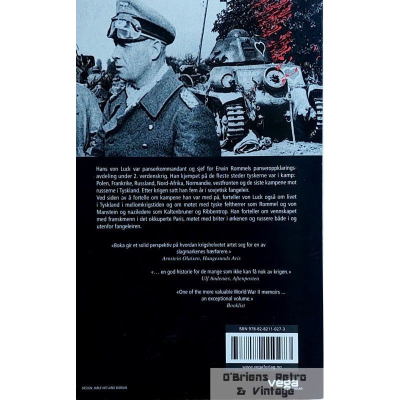 Hans von Luck: Rommels pansersjef, 1. utgave, Oslo 2008, pocketbok i god stand, brukt, illustrert, 368 sider. Se bilder for mer informasjon om boken.
