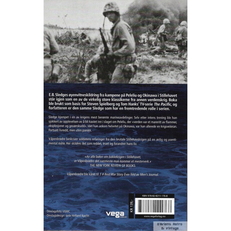 Eugene B. Sledge: Våpenbrødre: Stillehavskrigen 1944 - 45, Oslo 2011, heftet bok i veldig god stand, illustrert, 442 sider. ISBN 978-82-8211-176-8.