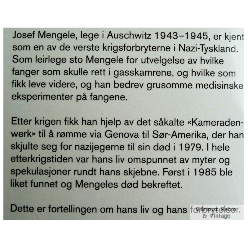 Anders Otte Stensager: Doktor Mengele - Liv og forbrytelser, Pax 2011. Pocketbok i god stand, bruksspor, hjørnebrett bakre perm, illustrert, 396 sider. 9788253034904.