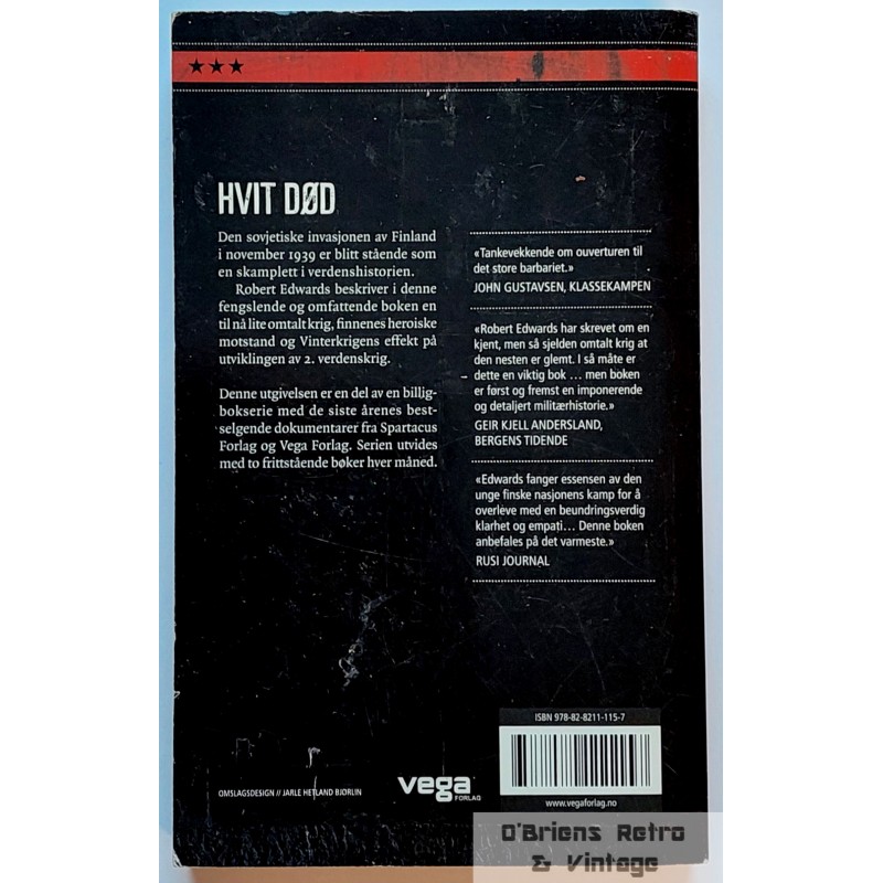 Robert Edwards: Hvit død - Sovjets krig mot Finland 1939-1940. Oslo 2012, pocketbok i bra stand, svak hjørnebrett på omslaget, illustrert, 330 sider. 2.verdenskrig.