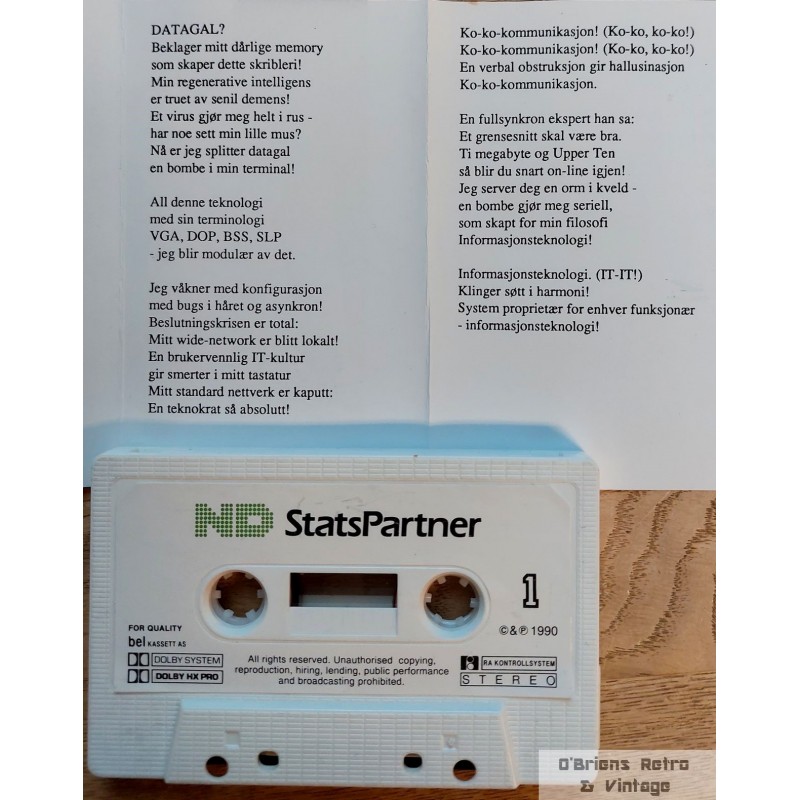 Artig kassett laget for Norsk Data (ND). I fin stand. Utgitt i 1990. Av Bjelleklang.