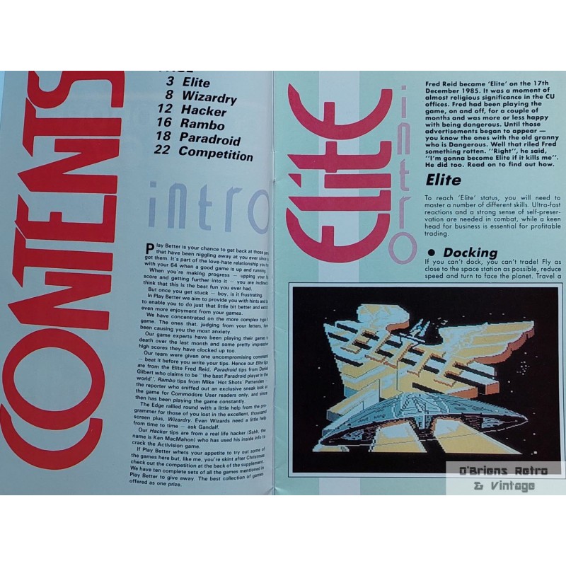 Det første heftet i Play to Win serien fra Commodore User. Her finner du informasjon og hjelp til spill som Elite, Rambo, Paradroid og Hacker. I veldig god stand.