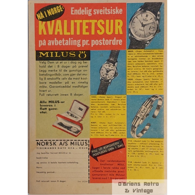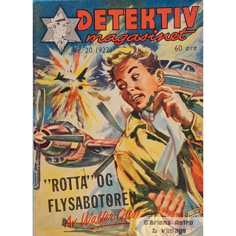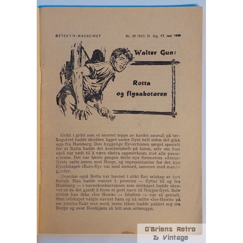 Detektiv-Magasinet fra 1959 i fin stand. Med historien Rotta og flysabotøren av Walter Gun. Se bilder for mer informasjon om heftet.