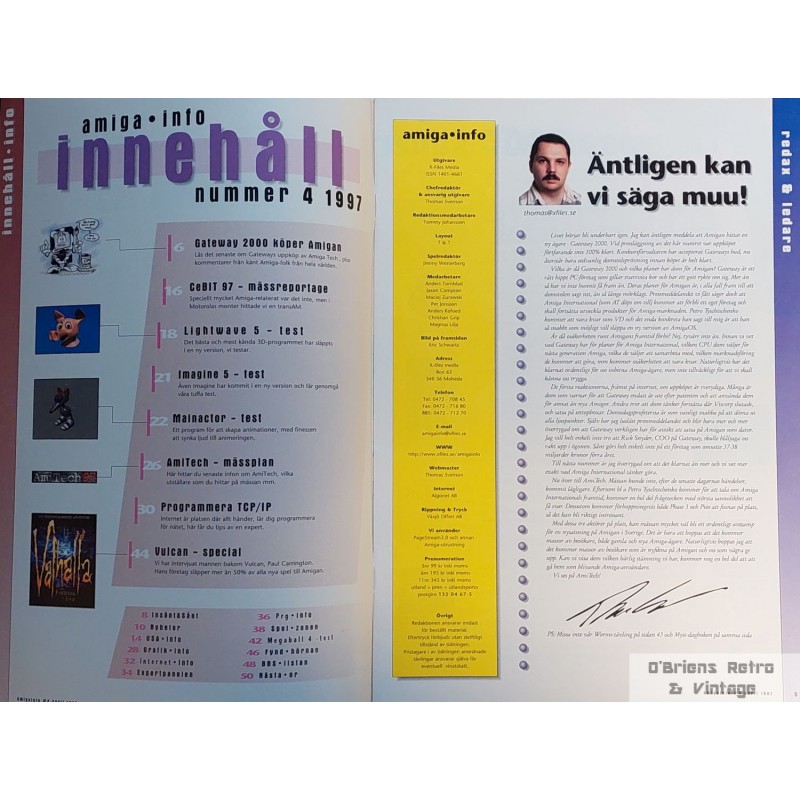 Amiga Info. April 1997. Nummer 4. Datamagasin fra Sverige i god stand. Lest, bruksspor. Les om AmiTech 97, Gateway 2000 köper Amiga, Imagine 5, og mye mer. Se bilder for mer informasjon om magasinet.