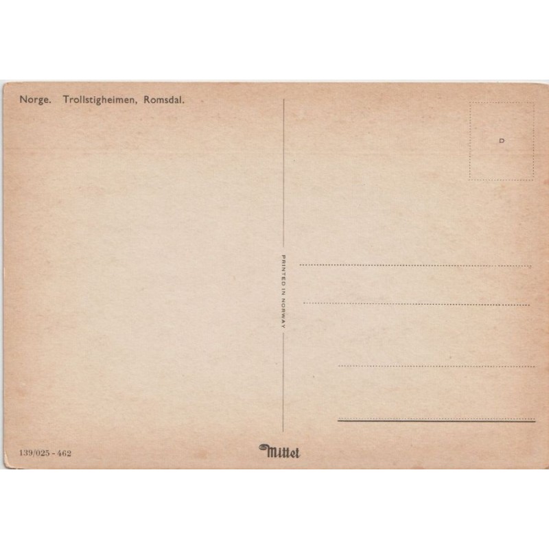 Norge. Trollstigheimen, Romsdal. 139/025-462. Mittet. Ikke postgått, god stand, litt misfarging på baksiden, se scans for kvalitet.