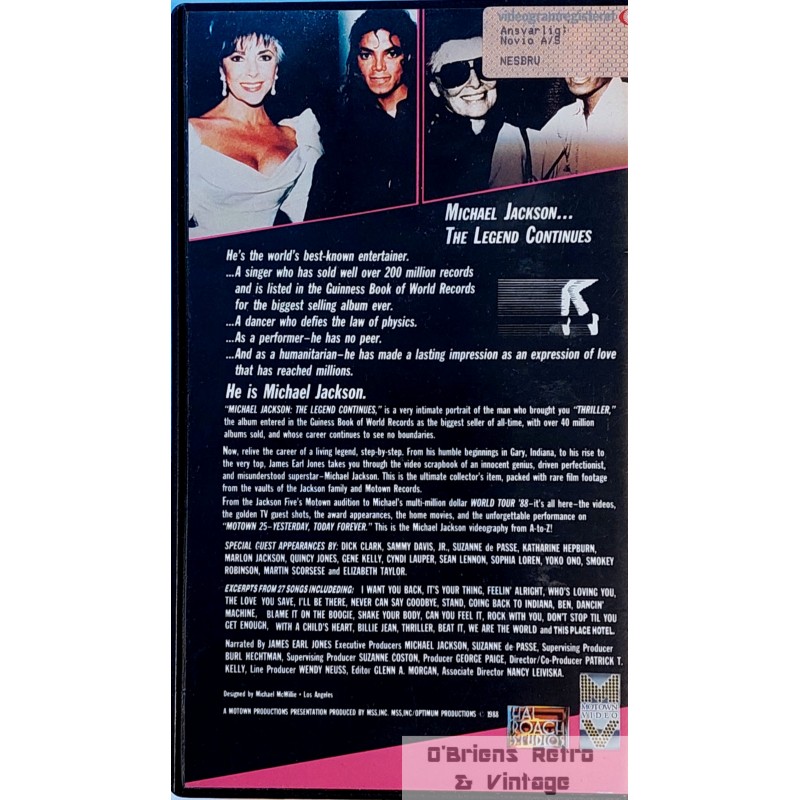 Original VHS‑utgivelse av Motown Presents: Michael Jackson – The Legend Continues. Scanbox AS. Filmen er i god stand, og coveret er pent bevart. Ikke testet, men fremstår som godt tatt vare på. Format: PAL.