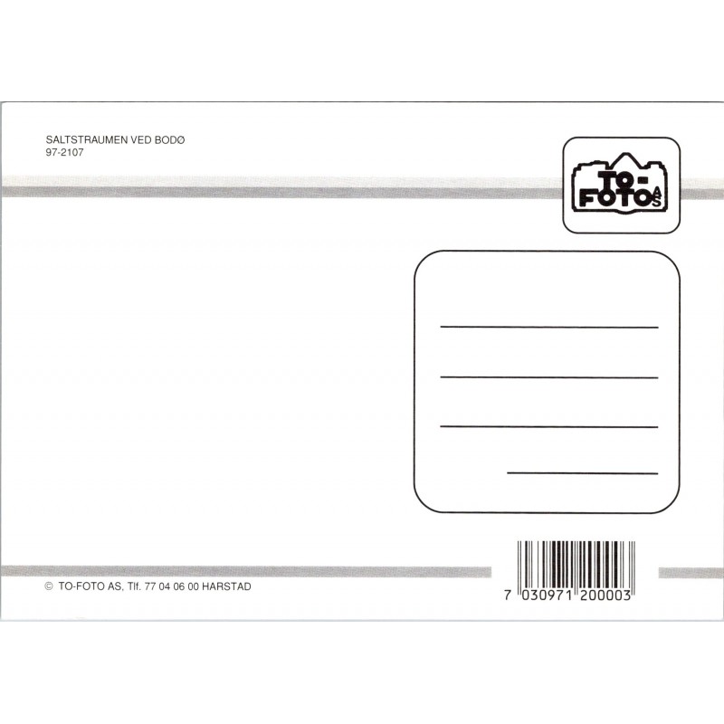 Saltstraumen ved Bodø. 97-2107. TO-FOTO AS. 7030971200003. Ikke postgått, veldig god stand, se scans for kvalitet.