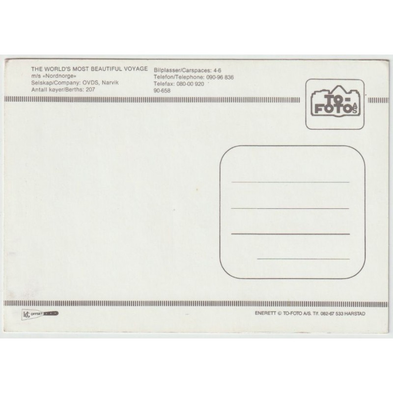 M/S Nordnorge. OVDS, Narvik. TO-FOTO AS. 90-658. Ikke postgått, god stand, se scans for kvalitet.