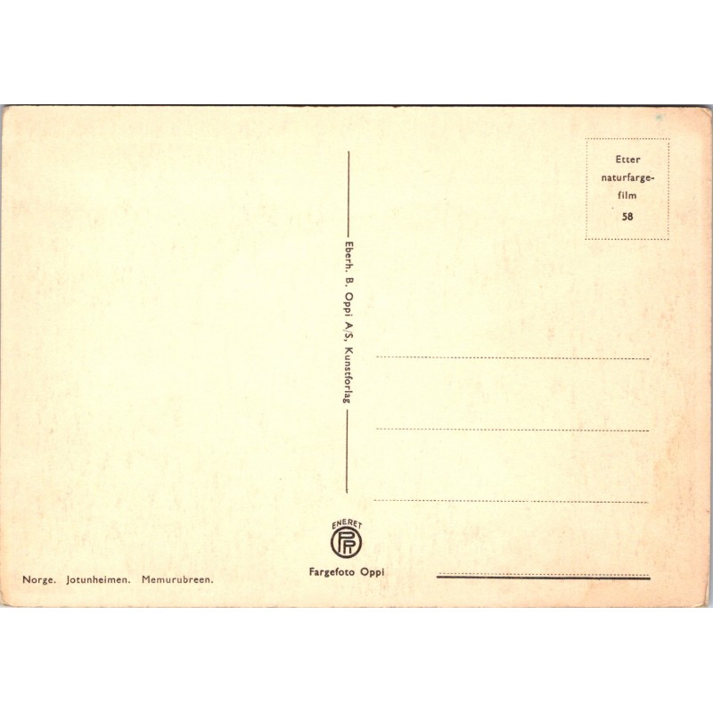 Norge. Jotunheimen. Memurubreen. B. Oppi A/S. Ikke postgått, fin stand, se scans for kvalitet.