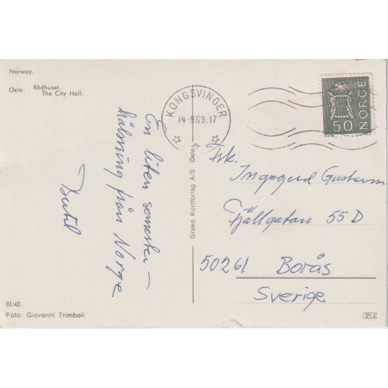 Norge. Oslo. Rådhuset. 01/42. Foto: Giovanni Trimboli. Grako Kortforlag A/S. Postgått, grei stand, bretter, liten rift nederst, se scans for kvalitet.