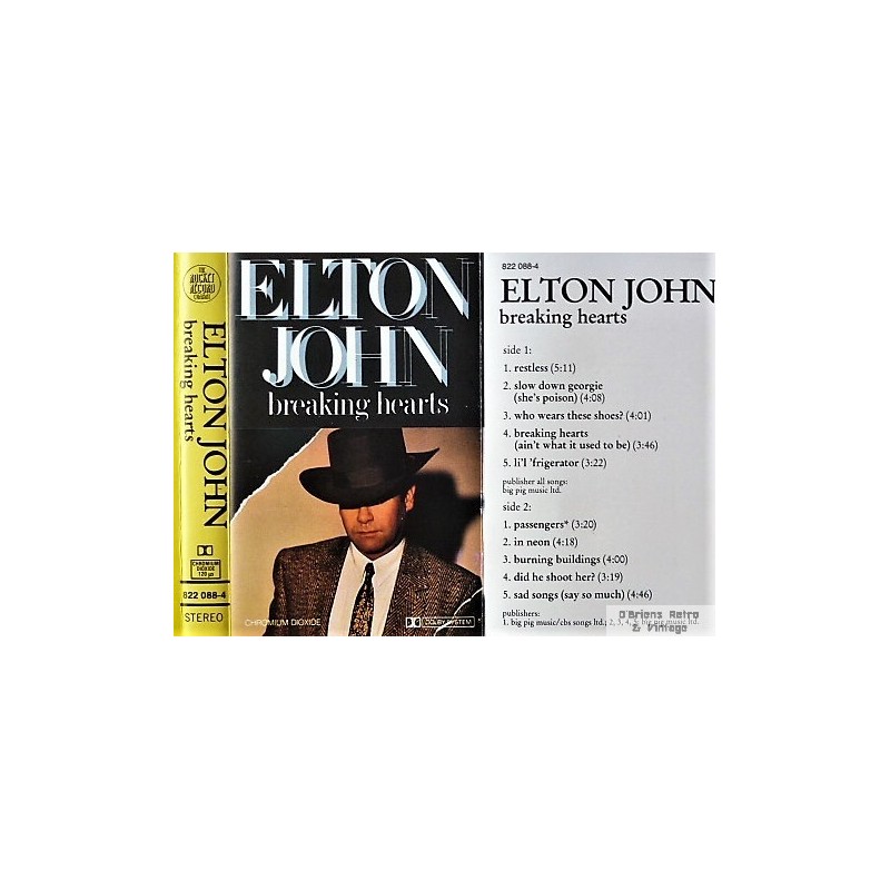 Kassett. Elton John - Breaking Hearts. Rocket Records 1984. I bra komplett stand. Testet og virker som den skal.