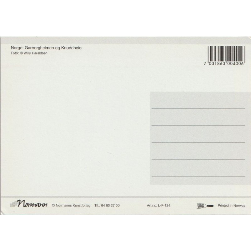 Norge: Garborgheimen og Knudaheio. Foto: Willy Haraldsen. Normanns Kunstforlag. L-F-124. Printed in Norway. Ikke postgått, i pen stand, se scans for kvalitet.
