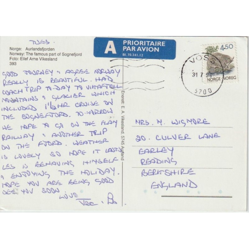 Norge. Aurlandsfjorden. Foto: Eilef Arne Vikesland. 393. Postgått, god stand, kantslitasje, se scans for kvalitet.