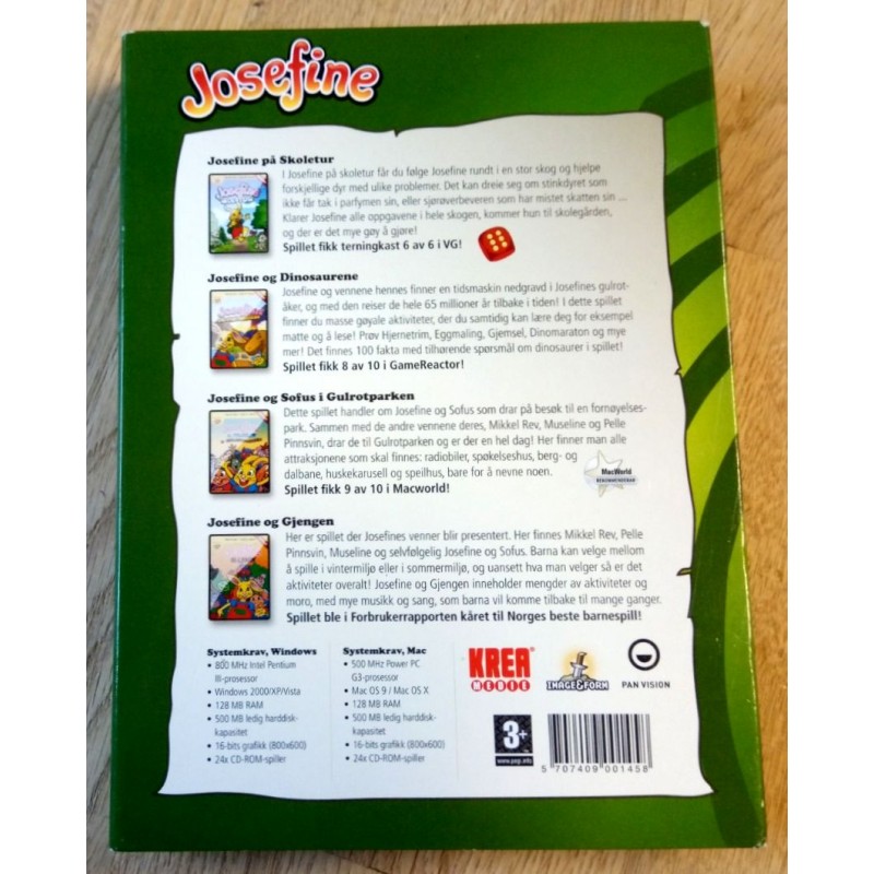 Fire Josefine-spill til Mac og PC. Bra stand. Gøy for barn, trygt for voksne. Passer barn i alderen 5 til 10 år.