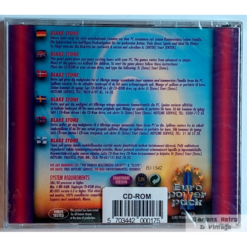 Som nytt, fortsatt innplastet. Med Blake Stone, Galactix, Back to the Forest, Argo Checkers og Batfish.