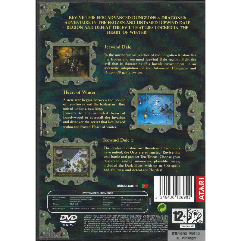 3 in 1 boxset. Pakke med Icewind Dale, Heart of Winter, og Icewind Dale 2. I fin stand. 3546430126905. Se bilder for mer informasjon om spillet.