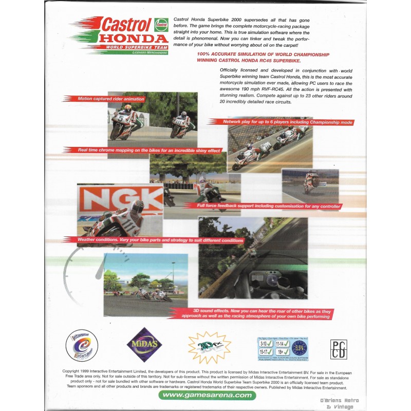 Castrol Honda World Superbike Team. Superbike 2000. PC-spill i stor eske i veldig god stand. Komplett med manual. 8713399001689. Made in Holland.